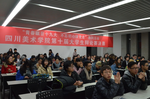 12月7日晚6点半,由共青团四川美术学院委员会主办,社团联合会承办的学校第十届“明哲思辩”大学生辩论赛决赛在五会议室热烈举行。校党委书记黄政、党委副书记左益出席比赛现场,相关部门负责人和思政课教研部、公共课教学部教师担任辩论赛决赛评委。各院系党总支书记、辅导员、师生代表到场观看了比赛。