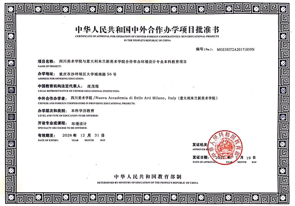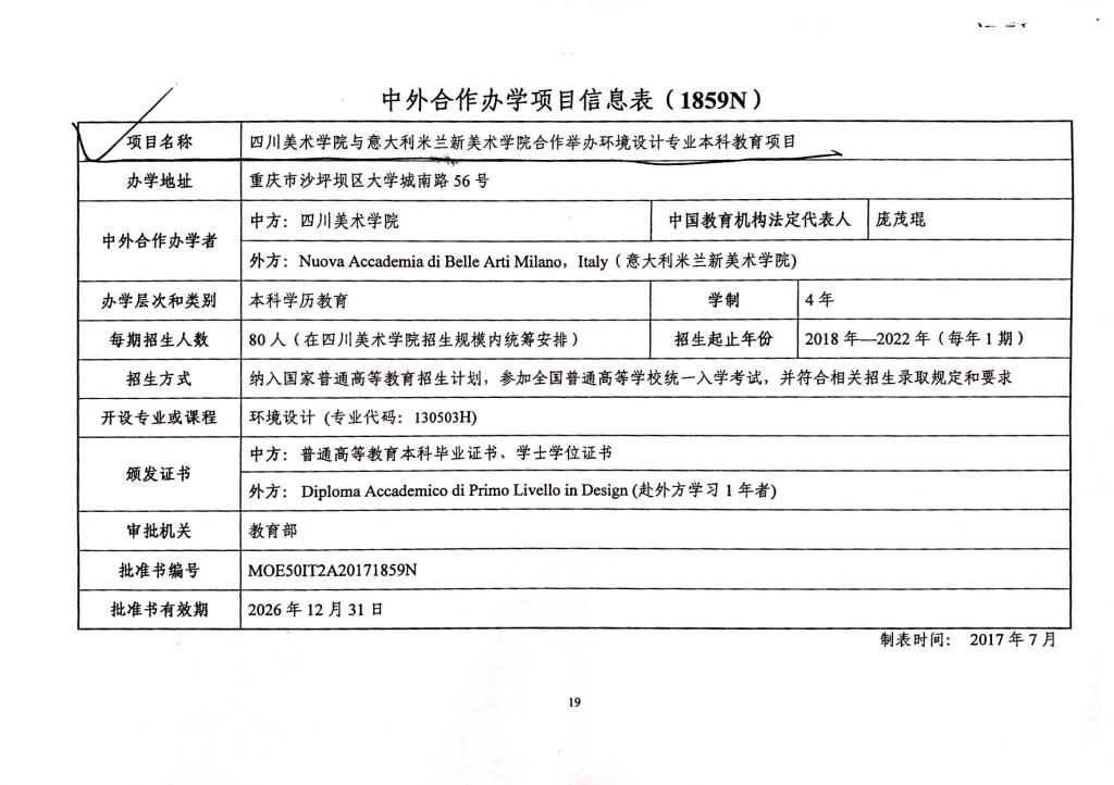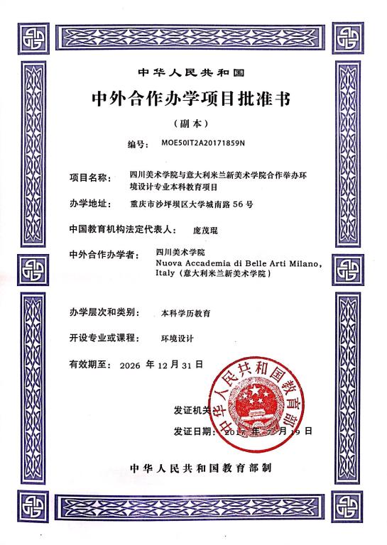 2017年,我校与意大利新米兰美术学院的3+1的合作办学项目已获得教育部批准,目前暂未招生。