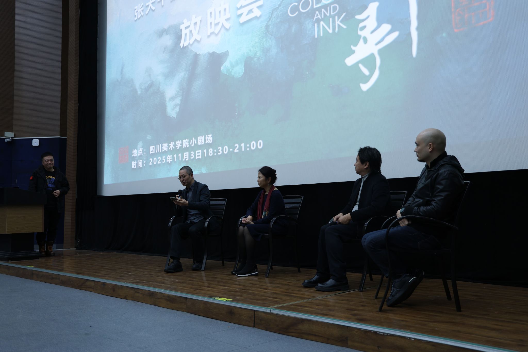 11月3日晚,纪录电影《万里千寻——张大千海外艺术人生纪录片》放映交流会在四川美术学院虎溪校区小剧场举行,一场跨越时空的艺术对话在此展开。活动邀请到本片导演张伟民、张大千后人(外孙女)肖岱文女士出席,活动还邀请到庞茂琨教授、杨振宇教授、黄越教授、尹丹教授以及中国画与书法艺术学院与影视动画学院领导、和师生以及美术馆研究教师参加此次活动。