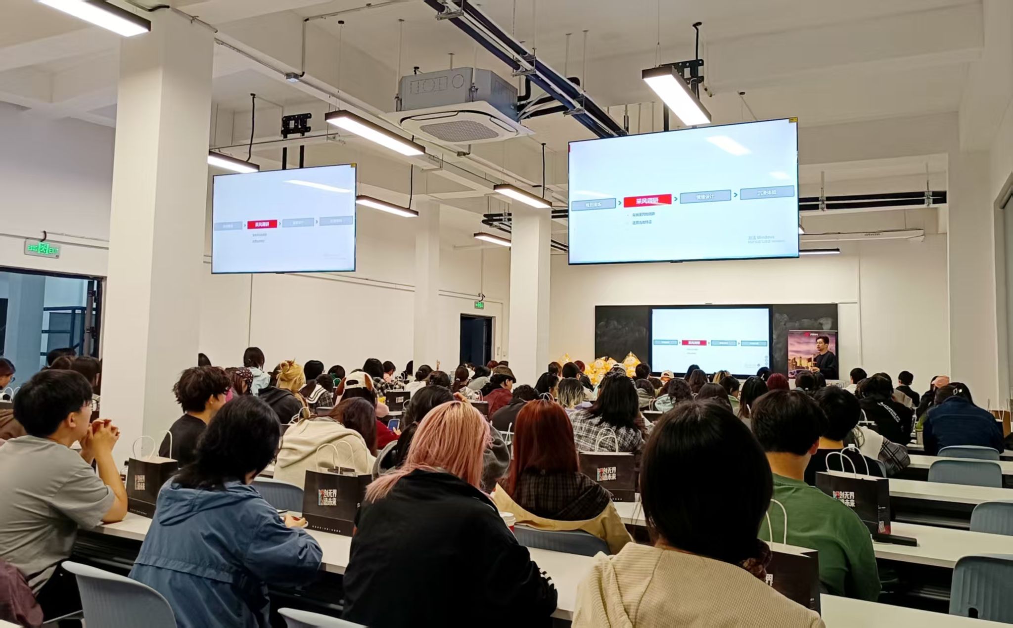现场,网易互娱代表还结合实际案例,展示了公司在原创IP孵化、虚拟现实技术应用等方面的创新成果,引发学生广泛关注。互动环节中,同学们踊跃提问,围绕实习安排、创意表达空间、跨学科协作等话题深入交流,气氛热烈。