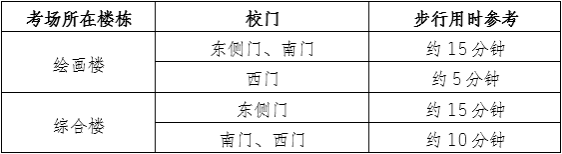 在四川美术学院虎溪校区考点参加考试的考生,可从校园东侧门、南门、西门进出考点。