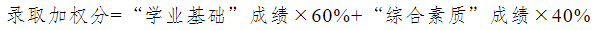 录取加权分以百分制计算,以四舍五入法保留至小数点后3位,计算公式如下: