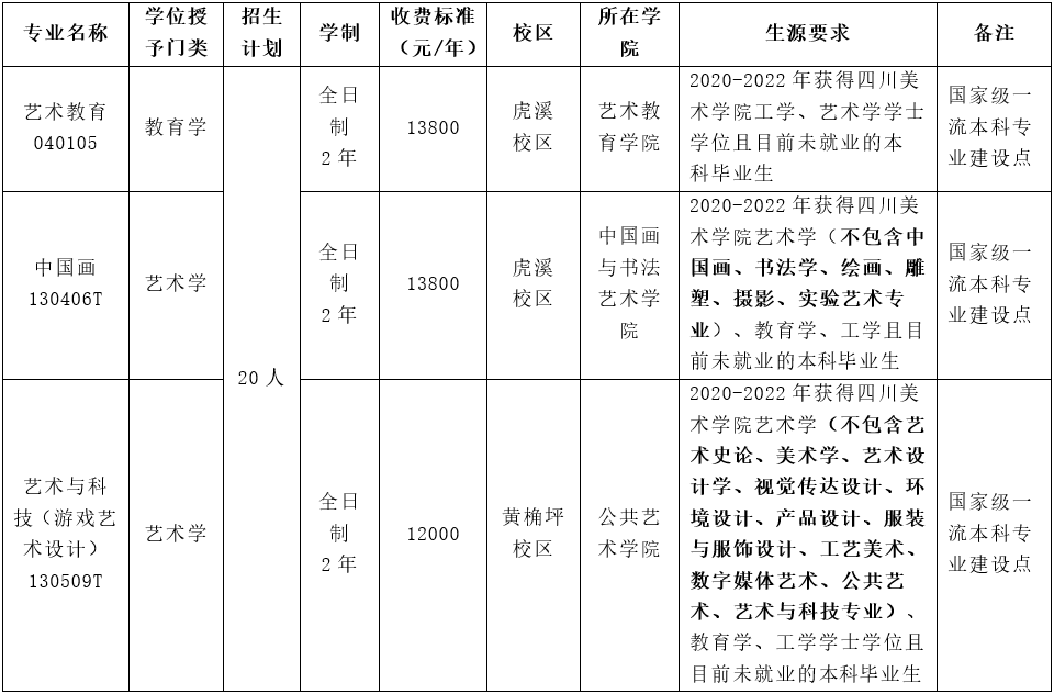 ①遵守中华人民共和国宪法和法律;②身体健康,有较强开拓创新能力,适合从事相关专业学习;③2020-2022年获得四川美术学院学士学位且目前未就业的本科毕业生(具体专业要求见第二部分)。