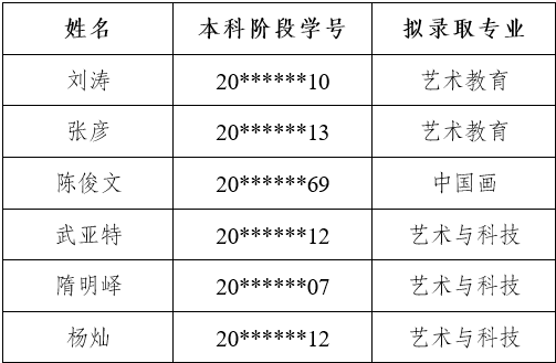 根据《四川美术学院2024年第二学士学位招生简章》,学校组织开展了第二学士学位招生录取工作。经过报名、资格审查、考核等环节,确定了拟录取名单,现予以公示如下: