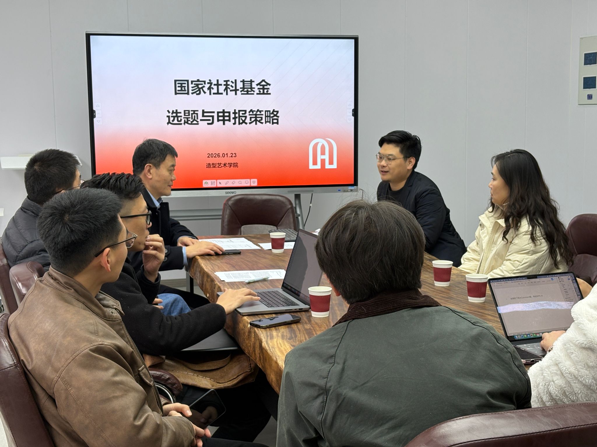 2026 年 1 月 23 日,在绘画楼造型艺术学院 HB201会议室举行了国家社科基金选题与申报策略辅导交流会。学院邀请了国家社科基金艺术学重大项目首席专家、重庆大学艺术学院院长张楠木教授为学院骨干教师及博士生开展专项辅导,由造型艺术学院副院长耿德法教授主持。
