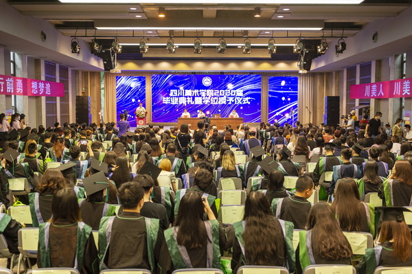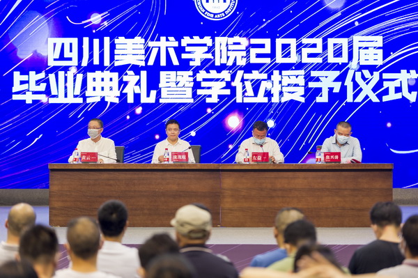 6月28日上午,四川美术学院2020届毕业典礼暨学位授予仪式隆重举行。主会场设在学校虎溪校区多功能厅,各分会场设在各二级学院。我校校长庞茂琨教授、纪委书记黄云、副校长焦兴涛教授在主会场出席了典礼。毕业典礼由党委副书记左益教授主持。