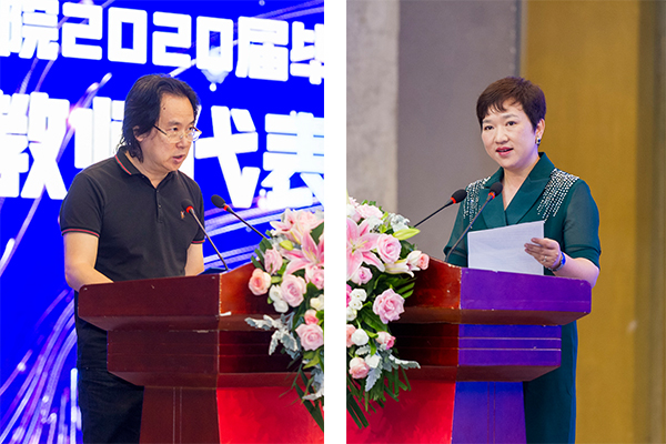 毕业典礼举行了隆重的表彰仪式。纪委书记黄云宣读了校优、市优毕业生表彰决定,副校长焦兴涛宣读了《关于公布2020届“学院奖”“最受大众喜爱作品奖”名单和毕业教学优秀组织单位的通知》。与会校领导为获奖毕业生颁奖。