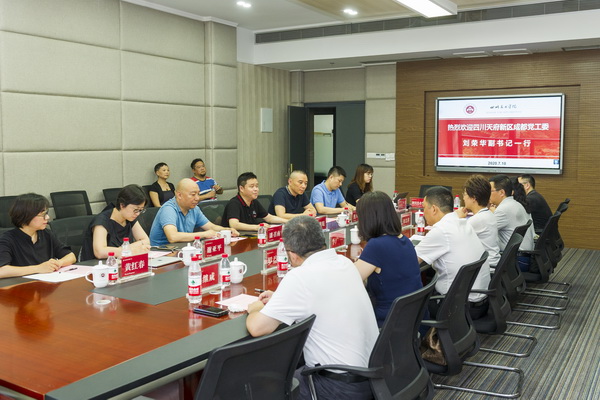 7月10日,四川天府新区成都党工委副书记、纪工委书记、监察工委主任刘荣华、天府新区社区治理和社事局局长李广、天府新区统筹城乡局局长周忠祥一行15人,到我校交流考察。我校党委副书记、院长庞茂琨,副院长张杰,副院长焦兴涛,党政办、创作科研处、财务处、艺术教育学院、建筑与环境艺术学院主要负责人热情接待。