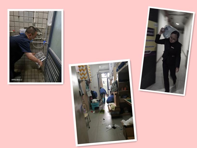 物业公司彻底打扫隔离房清洁卫生,分配生活物资,帮学生取快递、送三餐、递外卖,确保返校学生14天健康管理期间的生活无忧。
