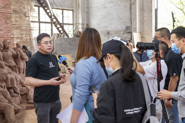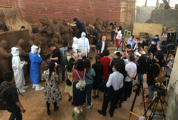把课堂设在雕塑现场,把讲授放在网上。作为课程思政的重要内容,本次媒体见面会全程作为我校造型艺术学院雕塑系的在线直播课堂,同步进行了课堂教学直播。焦兴涛副校长说到:“在新冠疫情发生之后,我们让这些生动的人物、鲜活的场景和感人的事迹,成为川美教学和创作的素材,不断提升学生把握大场景的专业创作能力,也带给学生思想上的洗礼。”