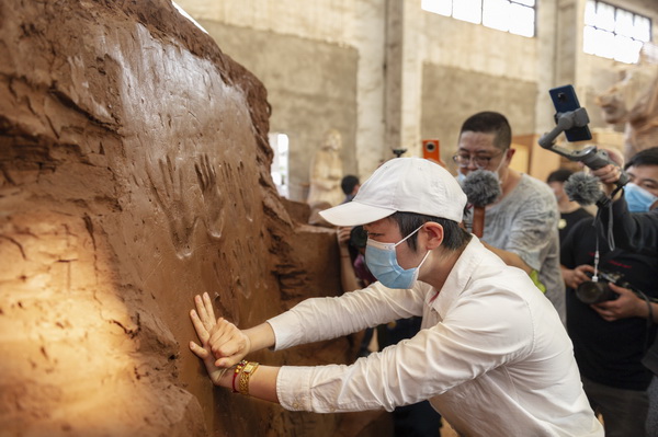 会上,重医杨竹副校长介绍了重庆医科大学医护人员支援湖北抗疫的有关工作情况。我校焦兴涛副校长介绍了四川美术学院“艺术就是力量”抗疫主题创作的整体情况。现场的一线医务工作者动情讲述了他们在湖北抗疫期间的亲身经历和感人故事,并对《冬去春来》群雕提出了很好的建议。媒体记者们就关心的问题,对出席现场的领导和一线医护人员们进行了采访和互动交流。最后,两校领导和医护人员们在作品背后依次按压上自己的手印,作为该群雕作品的重要组成部分和参与创作者,共同见证《冬去春来》群雕作品定稿。