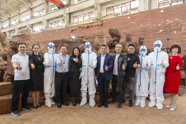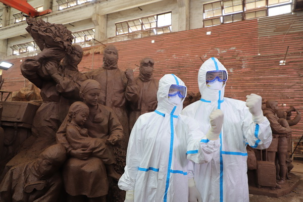 大型群雕《冬去春来》创作历时一月有余,现已经进入最后刻画阶段。为进一步完善作品,四川美术学院与重庆医科大学共同组织策划创作看稿会和媒体见面会,邀请了支援湖北抗疫一线医务工作者参与创作,现场为雕塑定形刻画提出宝贵意见,将抗疫精神与主题创作结合,用心用情雕塑抗疫丰碑。