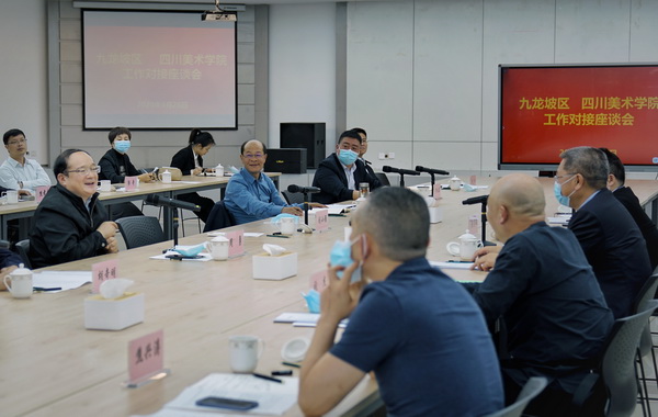 黄政书记首先对过去一年九龙坡区委、区政府支持川美发展表示了衷心的感谢,黄桷坪校区焕然一新,十三届美展雕塑展在黄桷坪校区圆满展出,充分体现了校地合作成果丰硕。黄政强调,当下,九龙半岛已纳入市级层面的重庆长江文化艺术湾区建设,川美要贴近全市发展大局,用真情回报九龙坡人民,全力支持九龙坡区委、区政府打造九龙美术半岛国际版。他提出,在下一步合作中,一是要围绕校区环境再提升工程,整体提升黄桷坪城市形象;二要加强校地干部交流;三要加大对艺术及培训机构的扶持力度;四要全力做好美术馆群、博物馆群等规划和建设;五要加快布局拍卖机构、交易市场;六要策划和开展好一系列具有国际影响力的艺术展会和交流活动。
