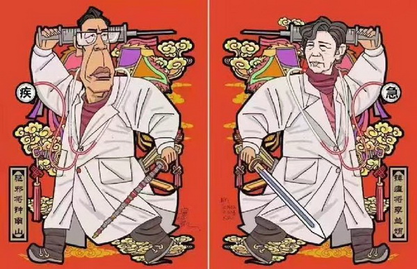 学校九三学社成员、影视动画学院周宗凯教授在立春的晚上创作《驱邪钟南山 镇瘟李兰娟》门神漫画,表达对所有医护人员的敬意(附图1);同时积极组织影视动画师生开展系列防疫抗病动画片、视频公益广告的制作,目前这批抗疫主题作品,正通过各媒体平台、各区县投放发布,进行抗疫公益宣传。
