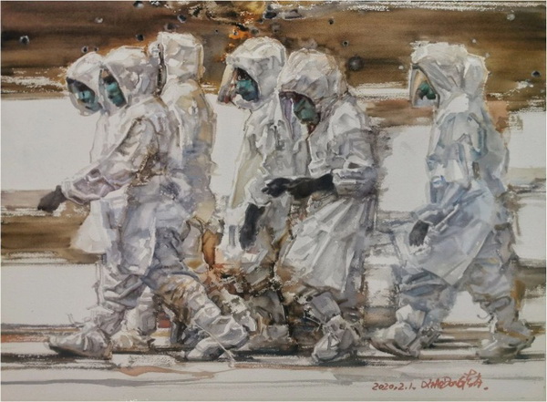 重庆市政府参事、学校中国画与书法学院副院长黄越教授创作《美的身影》,向战斗在抗疫一线的白衣天使致敬。