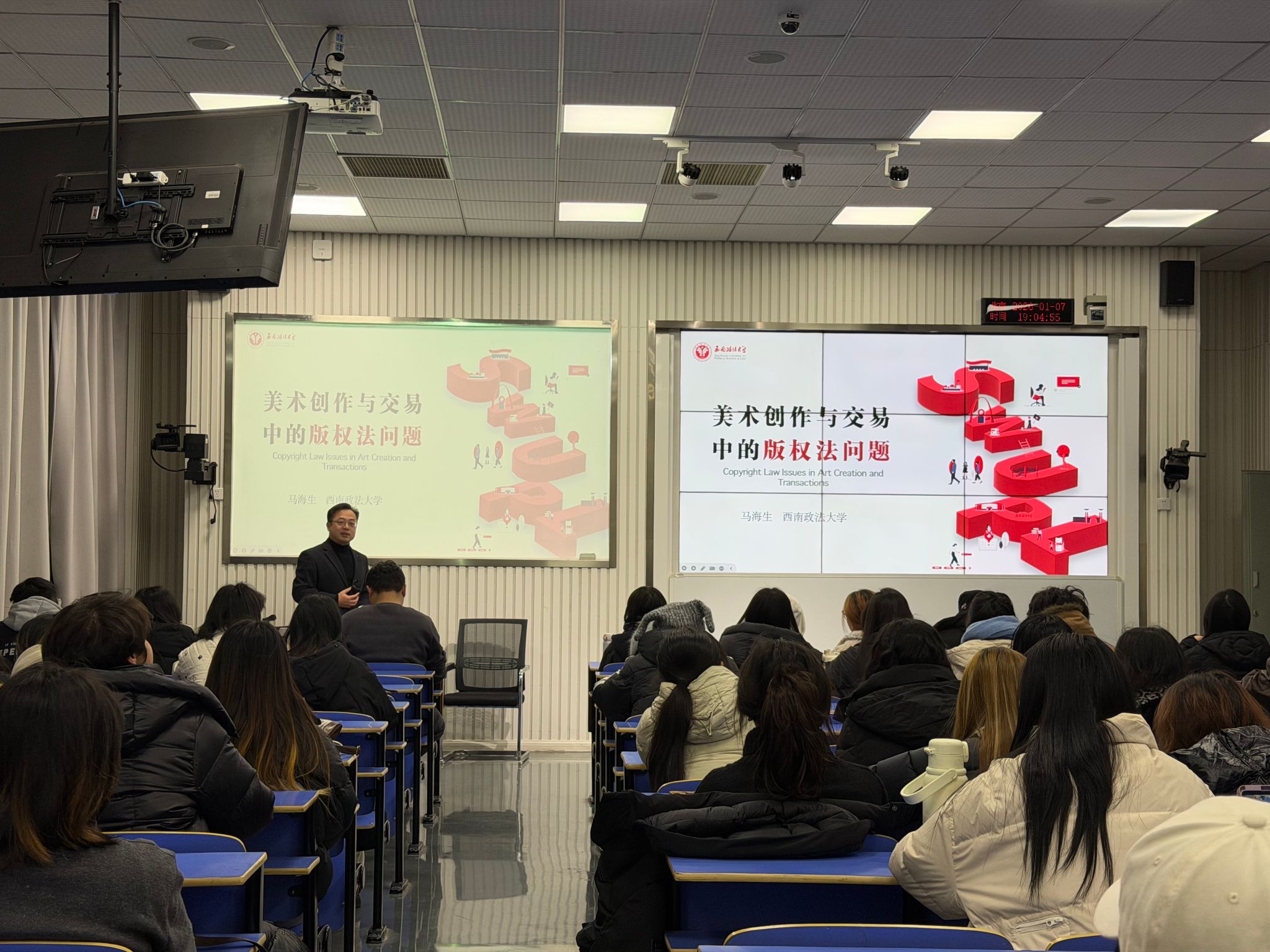 本次活动特别邀请到西南政法大学副教授马海生老师,以“美术创作与交易中的若干法律问题”为主题,为现场80余名同学带来了一场兼具专业性与实用性的法律知识普及讲座。